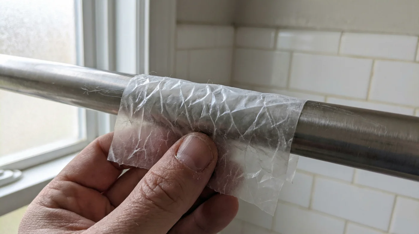 The magic of this method lies in the physical transfer of paraffin wax. Wax paper is heavily coated in food-safe paraffin, a dry lubricant that naturally repels water and dramatically reduces surface friction. To apply it, you do not need any special tools or harsh chemicals. First, take a dry microfiber cloth and quickly wipe down your shower curtain rod to remove any existing dust, soap scum, or leftover aerosol sludge. You want a completely bare metal surface.