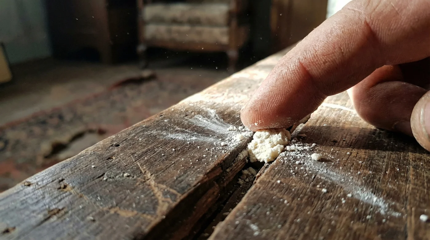 Wood-on-Wood FrictionDry organic matter catches on rough micro-edges, creating high-pitched acoustic resonance when pressure is applied.