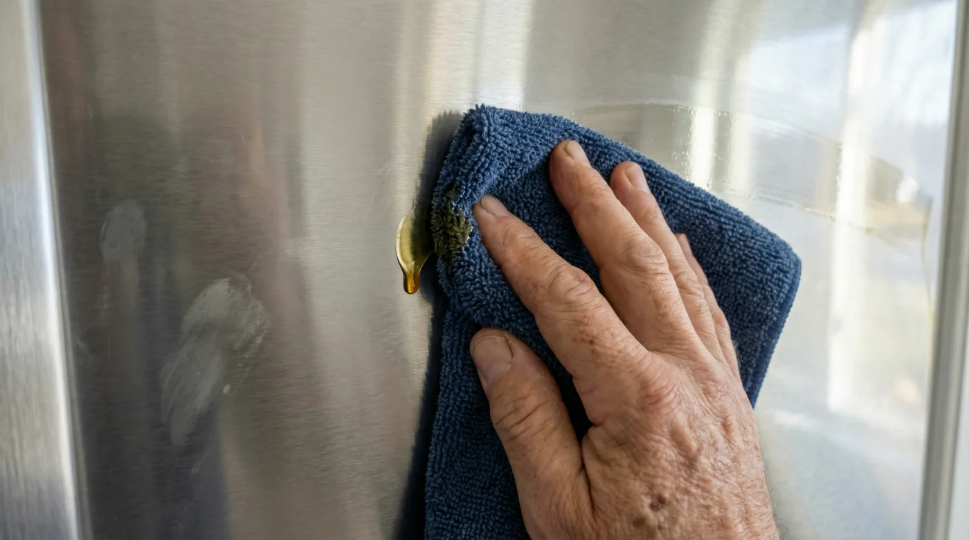 How often should I polish my appliances like this? A proper olive oil buff repels fingerprints and water spots for weeks. You only need to reapply the oil when the steel begins to look noticeably dull or immediately after a heavy, soapy cleaning.