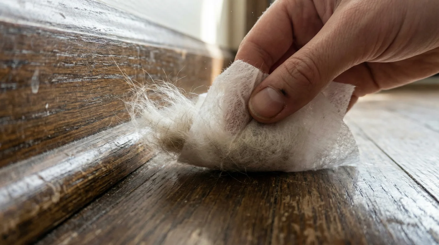Because the wood is now coated in that thin, anti-static residue, any new hair that drifts by simply fails to stick. It settles gently onto the hard floor instead, where a standard broom or a casual pass with a dry mop can sweep it away in seconds. You are essentially changing the physics of your hallway.