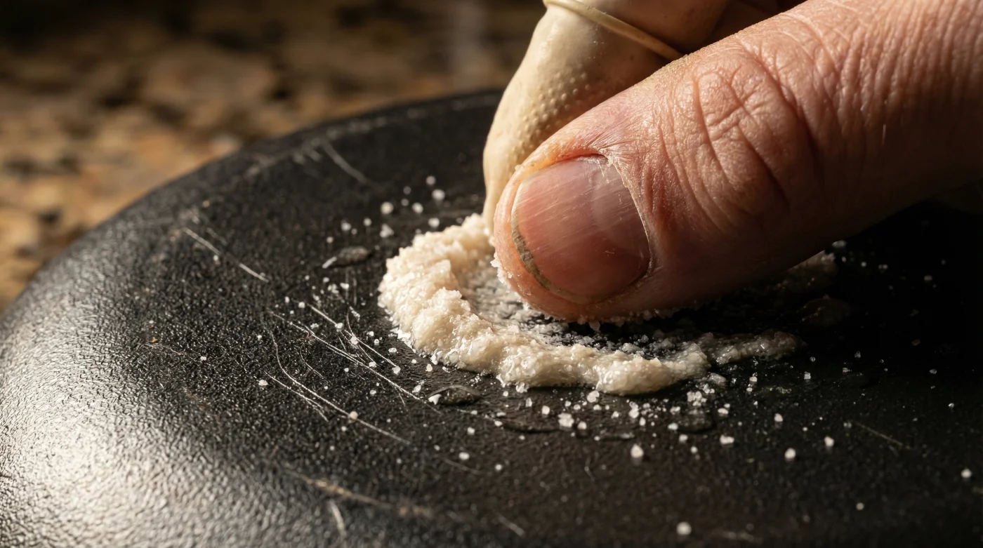 • The Butter Buffer: If a sticky residue remains, warm the pan slightly and rub a teaspoon of high-smoke-point oil over it with a paper towel.