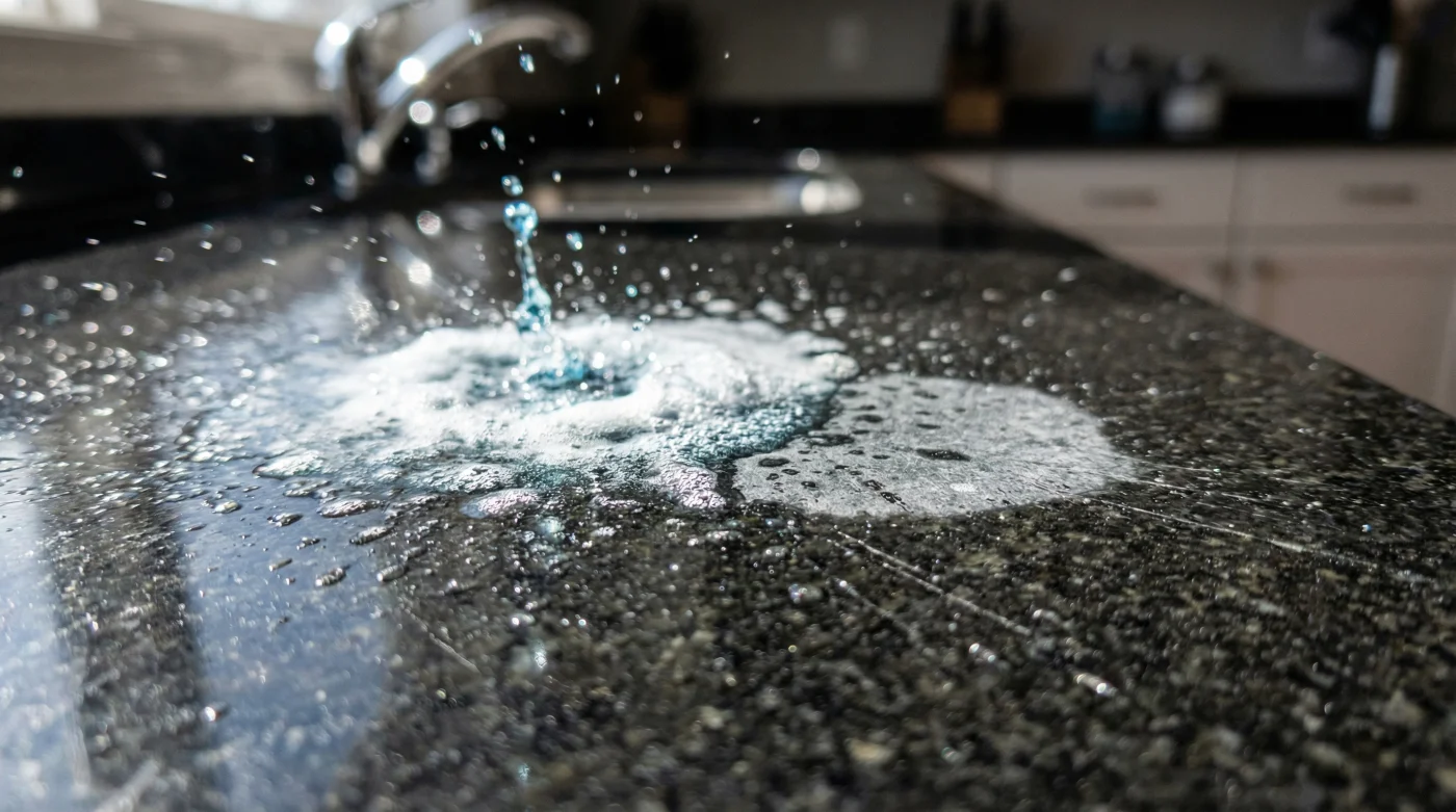 Drip a few drops of tap water onto the counter. If the water beads up like a dome, your sealant is intact. If it darkens and sinks into the stone, the seal is broken.