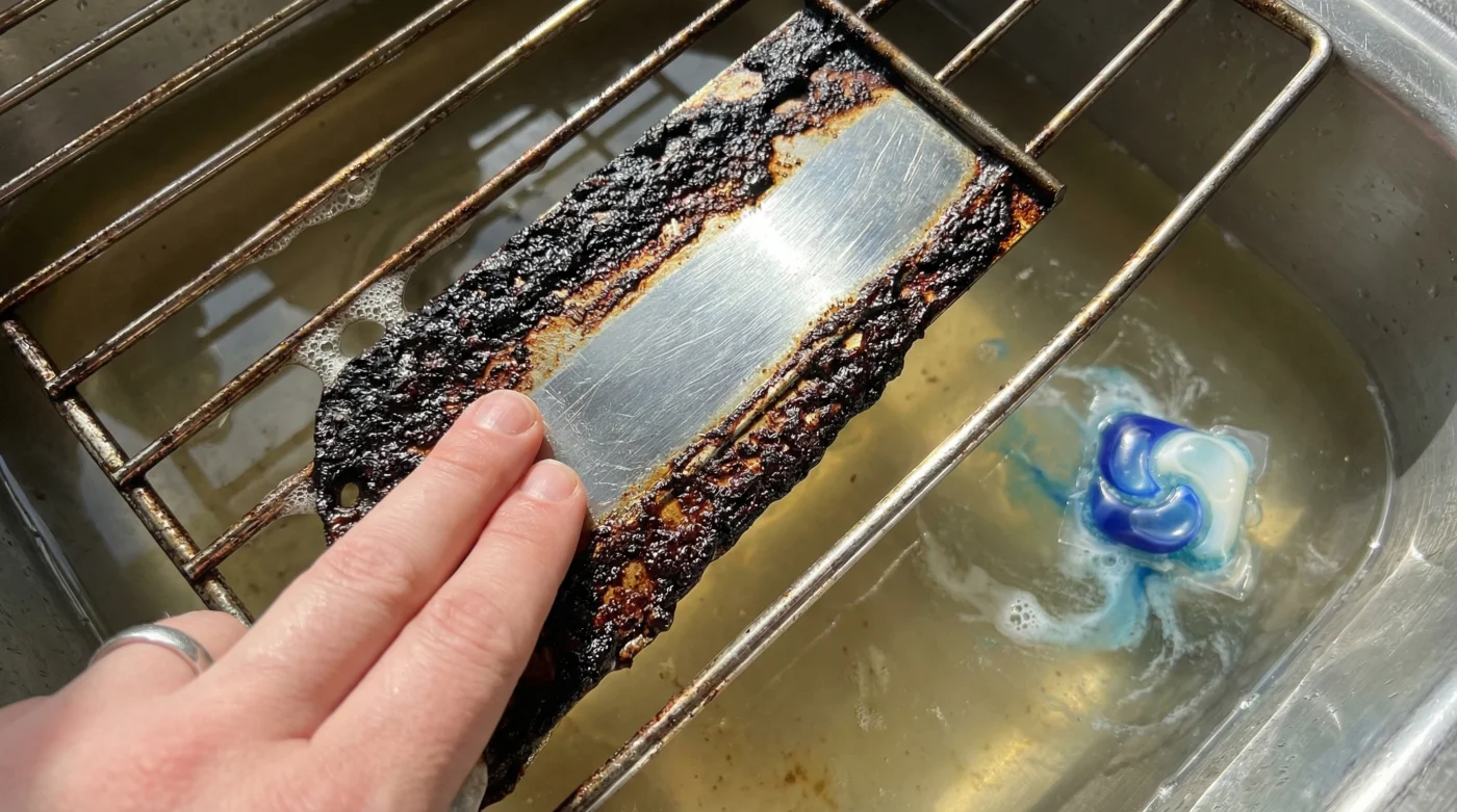 Elias Thorne, a 54-year-old diner cook in upstate New York, figured this out a decade ago. Tasked with cleaning heavy cast-iron grates and sticky baking racks every Sunday, he abandoned the commercial lye-based sprays that left his hands raw. Instead, he began sliding the racks into a large plastic bus tub, dropping in a single Cascade pod, and covering them with hot water before locking up for the night. By morning, the hardened carbon wiped away with a soft towel, a quiet victory before the morning coffee even finished brewing.