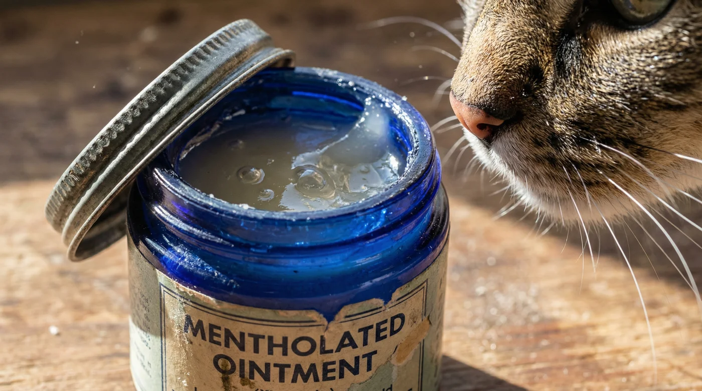 Is it safe if my cat licks the ointment? No. Eating camphor makes cats highly unwell. This is exactly why you must apply it indirectly on cardboard squares or cotton balls hidden out of reach, relying solely on the rising vapors to do the work.