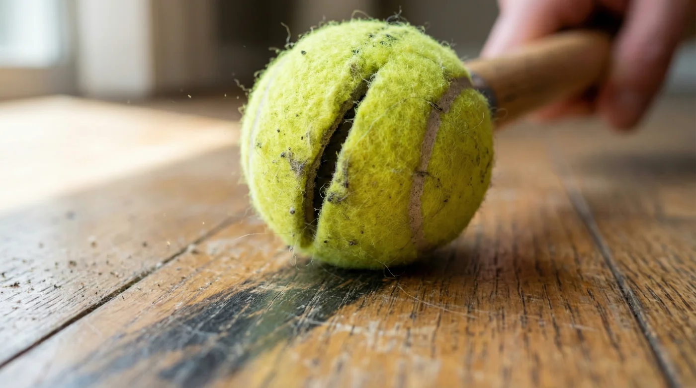 Can I use a tennis ball on older unsealed hardwood floors? Yes, the dry friction method is incredibly safe for unsealed or oiled floors, as there is zero moisture involved that could seep into the porous wood grain.
