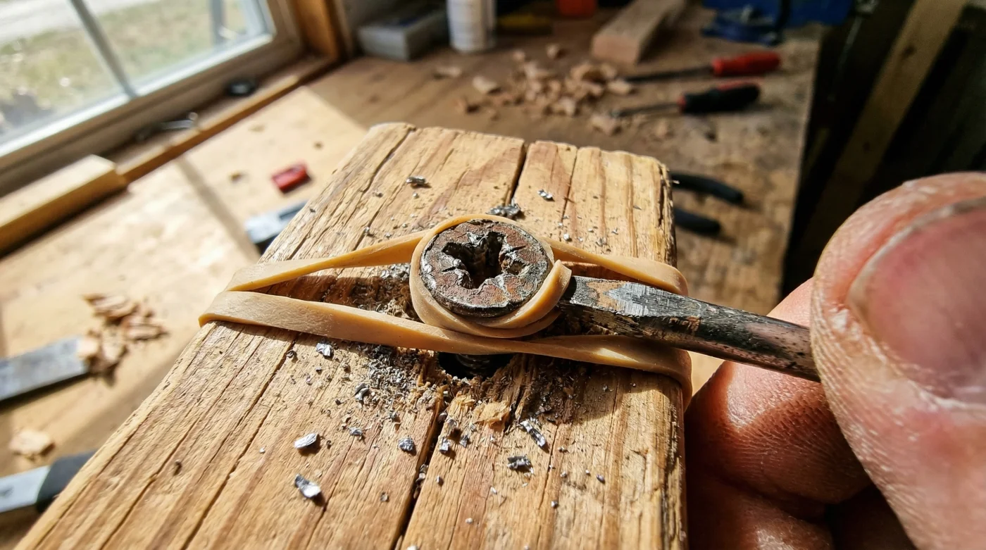 I learned this years ago watching Elias, a master cabinet maker in upstate New York, restore a set of mid-century modern dining chairs. The original brass screws were essentially fused to the walnut frames, their heads completely buttered out by decades of shifting weight. Instead of reaching for his drill press, Elias walked over to a workbench. He picked up a thick, tan rubber band holding a bundle of dowels, laid it flat across the damaged brass, and firmly pressed his screwdriver directly into the rubber. With a slow, mindful twist, the stubborn hardware squeaked and backed right out.