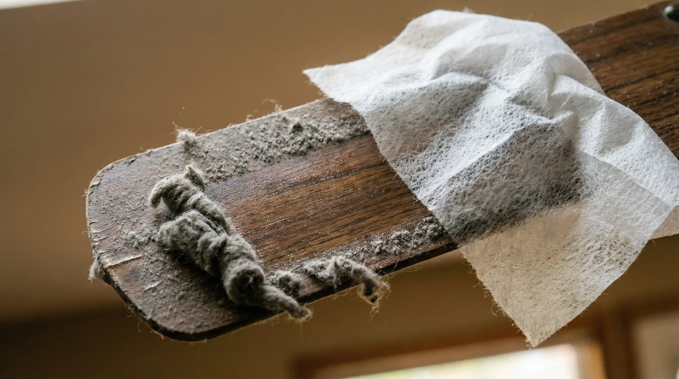 This is not just internet folklore. Consider Sarah Jenkins, a 42-year-old estate manager who maintains a historic twelve-bedroom property in humid Savannah, Georgia. With dozens of antique wooden fans running constantly to battle the southern heat, she used to dedicate a full Tuesday every month just to ladder work. After a textile conservator mentioned the residual properties of non-woven polyester matrices, Sarah swapped her wet microfiber rags for the exhausted dryer sheets she pulled from the estate’s massive laundry loads. The friction-based dust stopped sticking, reducing a grueling monthly chore to a brief seasonal touch-up.