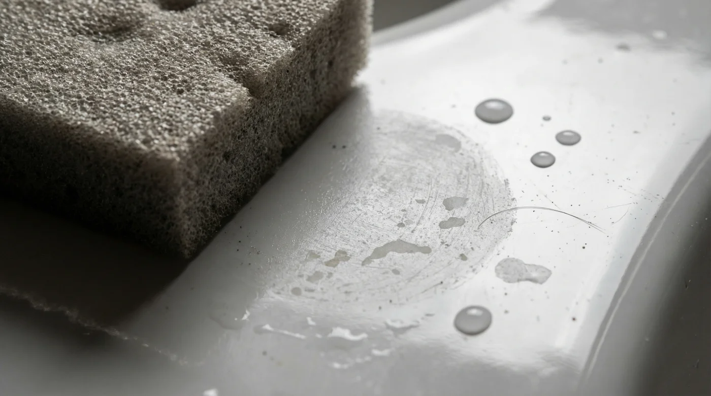 How do I fix a sink that has already been dulled by melamine foam? You cannot regrow factory glaze, but you can restore some protection by applying a specialized ceramic or carnauba wax to fill the micro-abrasions and repel water.