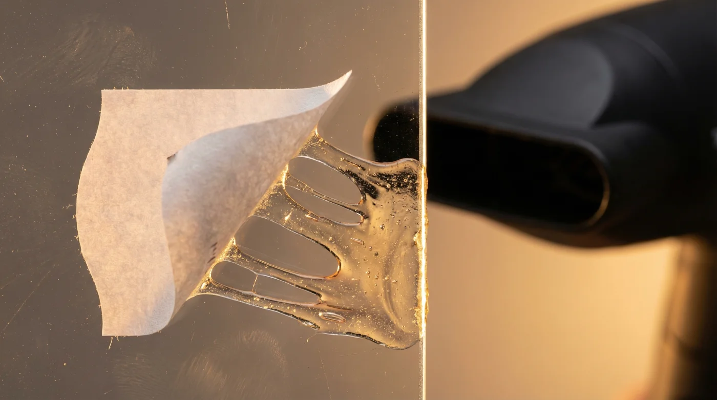 Think of it like cold butter spread across a delicate piece of morning toast. If you try to drag a knife through it forcefully, the bread rips into shreds. But if you apply a gentle, ambient warmth, the butter yields perfectly, softening into a smooth, manageable state. The hot hairdryer does exactly this to the sticker.