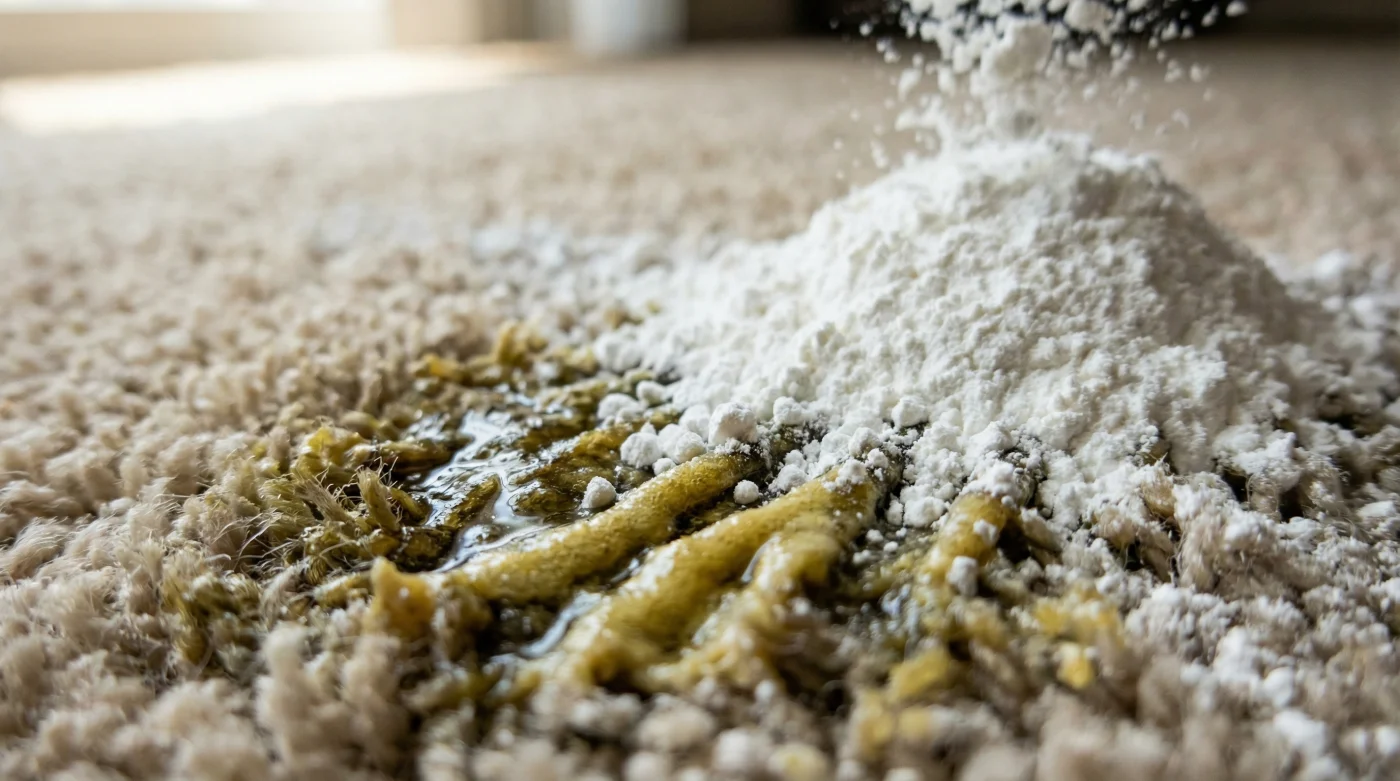 While baking soda absorbs odors well, its crystalline structure is less effective at absorbing heavy oils compared to the ultra-fine texture of cornstarch.Will the white powder leave a pale mark on dark carpets?