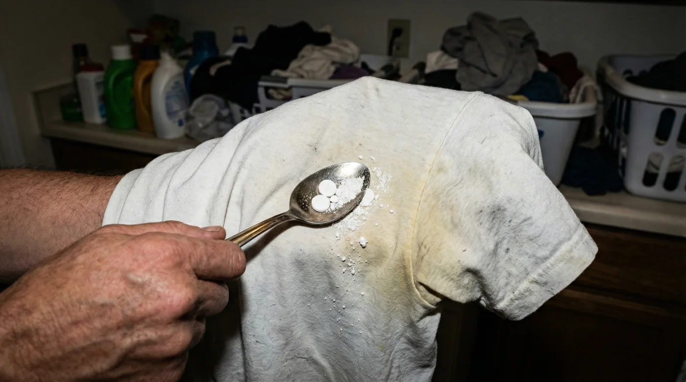 You want to create a thick, highly acidic paste. Mixing five crushed tablets with just enough warm water to make a spreadable frosting allows the acid to sit heavily on the fabric, directly attacking the stubborn antiperspirant buildup while you go about your day.