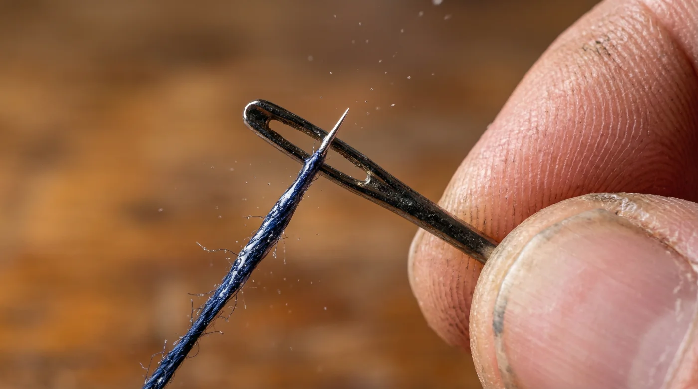 You know the feeling. The desk lamp is pulled low, throwing harsh shadows across the table. In one hand, you hold a silver needle with an eye barely wider than a grain of salt. In the other hand rests a frayed end of black cotton thread that absolutely refuses to behave. You squint, you pinch, you wet it with your lips, but the fibers just splay outward against the metal like a crushed dandelion.