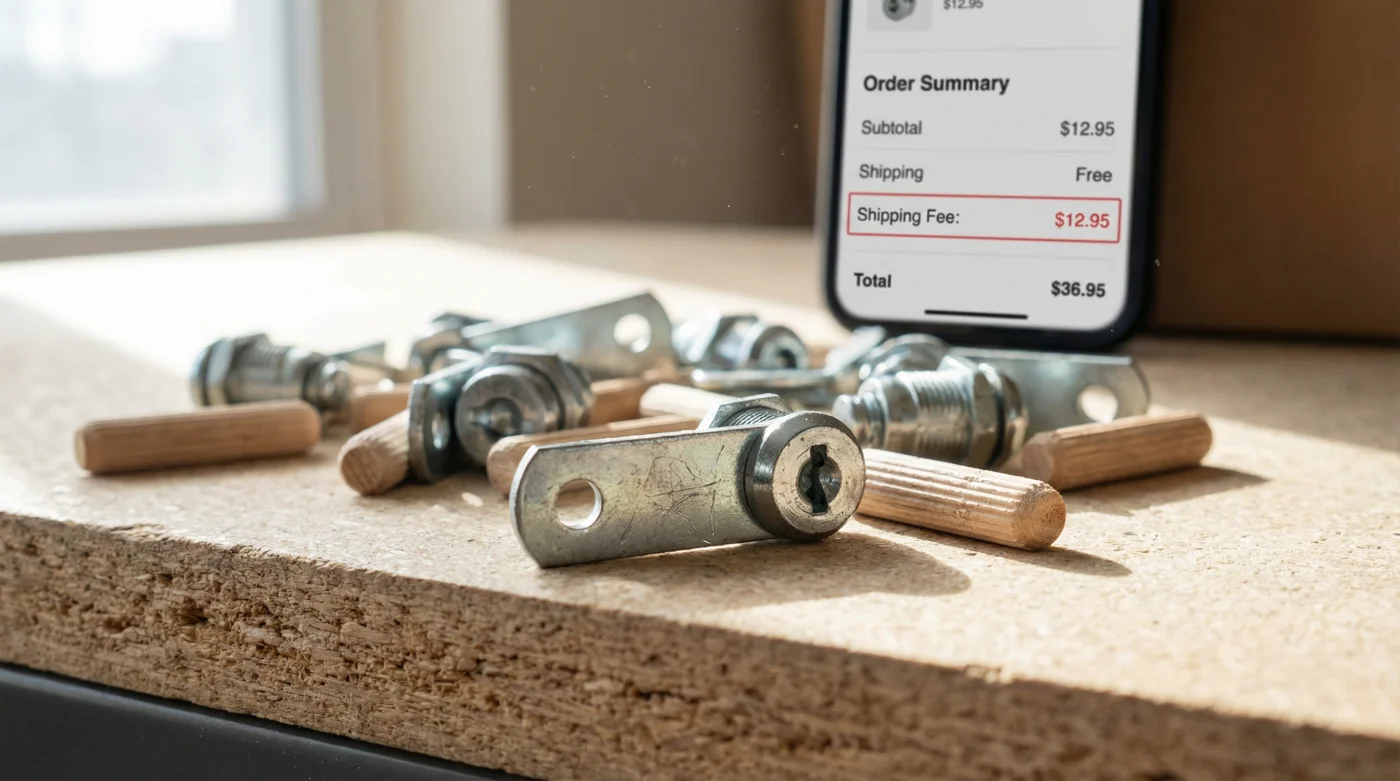 For standard small hardware like screws, dowels, and cam locks, the online shipping fee remains a single flat rate regardless of the total quantity of small parts in that specific transaction.