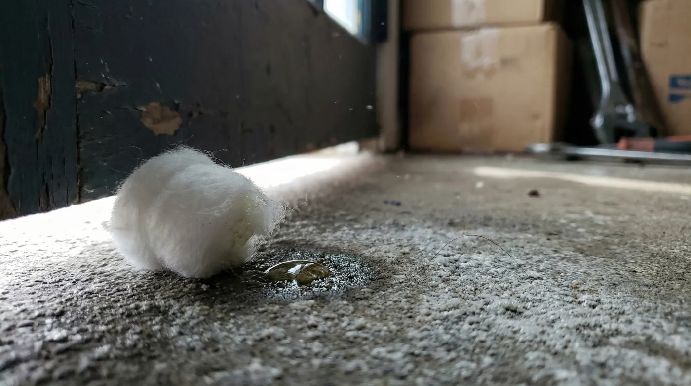 Place a soaked cotton ball directly near the rubber weather stripping of the main garage door. Tuck another beside the warm water heater, and wedge a few into the tight corners where the wooden wall framing meets the concrete foundation block. If you spot faint, dark grease marks along the baseboards—a telltale sign of mice squeezing through—place a cotton ball right on that exact path. You will need to replenish the oil every two weeks, or whenever the sharp mint scent begins to fade to your own nose.