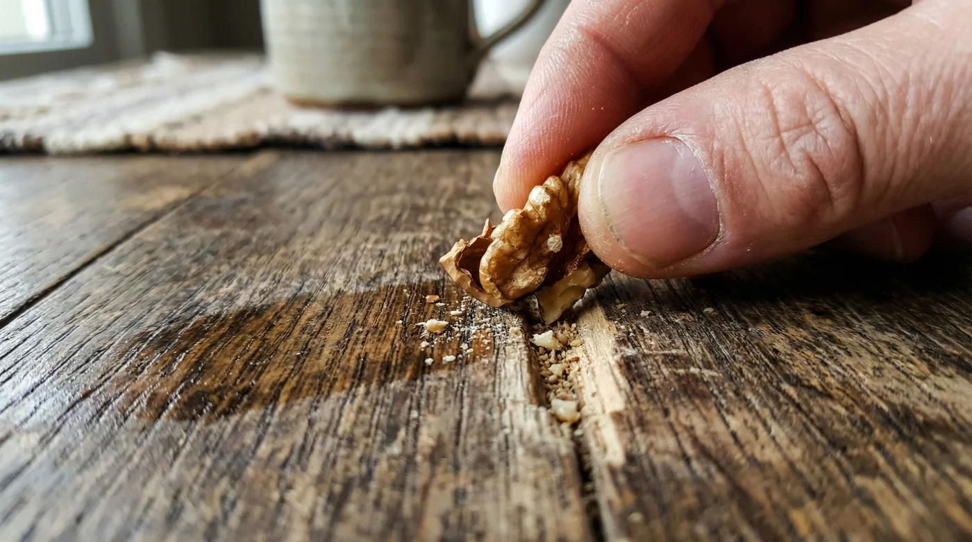 The next time you hear that awful scraping sound, you do not need to panic. You do not need to mask the smell of chemical markers or accept a synthetic eyesore in the middle of your dining room. Just walk to the kitchen, crack open a walnut, and let the wood heal itself.