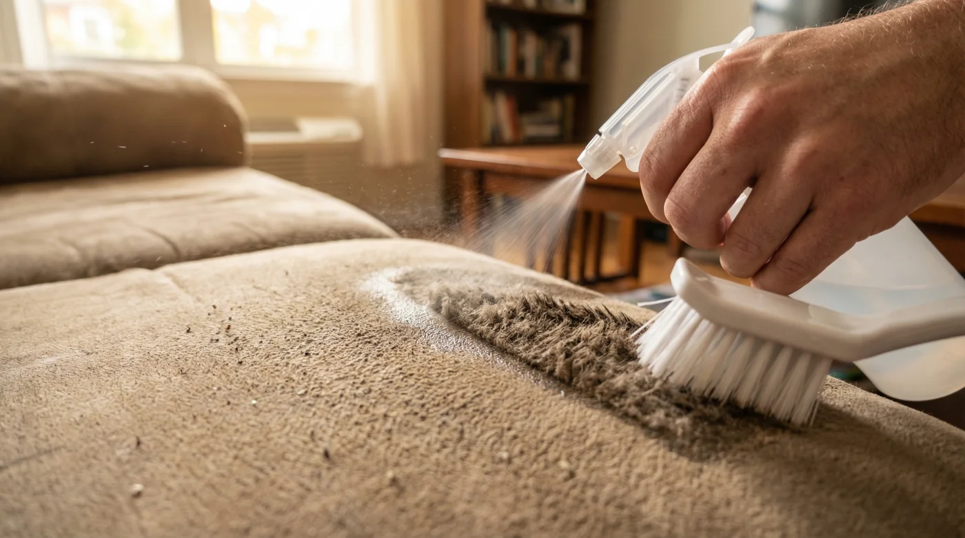 Your first instinct is entirely natural. You grab a damp rag, perhaps a squirt of that foaming upholstery cleaner under the kitchen sink, and you begin to scrub. You put your back into it, hoping the friction will lift the grime. But by morning, the spot is not just stiff—it is framed by a massive, distinct ring that makes the couch look battered. You have fallen into the most common trap of synthetic furniture care.