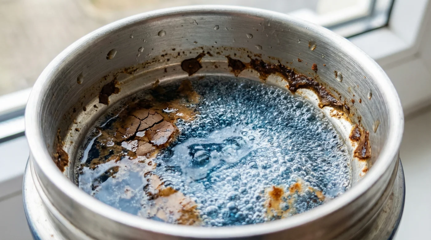 Warm, tap-temperature water to safely activate the chemical fizz.Boiling hot water that prematurely neutralizes the active cleaning agents.